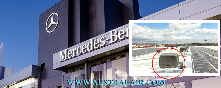 BREEZAIR mantiene fresco en verano el taller de reparación de Mecha Motor S.A., mediante un caudal constante de aire enfriado de forma natural. Además, como el aire enfriado se introduce en la estancia y luego se expulsa, se eliminan también los olores, gérmenes y contaminantes transportados por el aire que provienen de la pintura y los productos químicos utilizados en el taller de carrocería y, al no volver a circular por el edificio, se crea un ambiente más saludable.