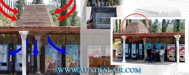 Lugares tan destacados como los parques temáticos y de ocio Warner Bros en Madrid, Terra Mítica (Alicante) o la propia Expo2008 de Zaragoza tenían un problema común: climatizar “la calle”, espacios abiertos e ilimitados en los que es difícil, por no decir imposible, contener el aire fresco. Pero esto no es problema para BREEZAIR. Los climatizadotes BREEZAIR crean una “isla de frescor” en el área en la que son implantados, permitiendo generar un microclima en ese lugar. Así, hacer colas para acceder a las atracciones en la Warner (Madrid), en pleno Agosto y con temperaturas de hasta 40oC ya no es un suplicio cuando se recibe la brisa fresca generada por los climatizadores BREEZAIR, que vierten aire fresco en cascada sobre las personas, generando un efecto muy refrescante y reconfortante o en las zonas de descanso con máquinas de expender bebida de Terra Mítica, donde se puede tomar un refresco, en plena calle, a temperatura muy agradable